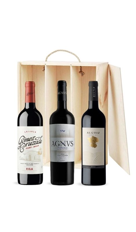 Cesta de vino Rioja en caja de madera | Regalo elegante.