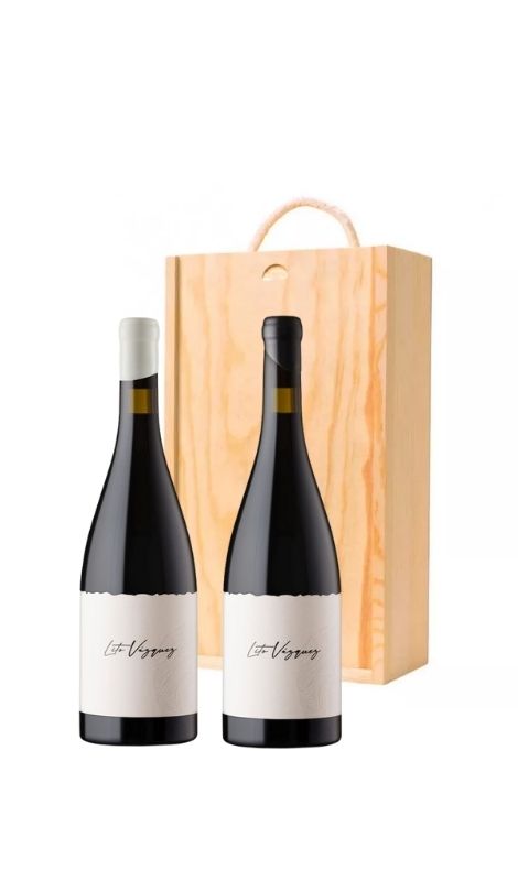 Descubre la elegancia del Pack de Vinos Lito Vázquez, una selección exclusiva que combina un vino blanco fresco y aromático con un vino tinto intenso y equilibrado, presentados en una caja de madera artesanal ideal para regalo o colección.